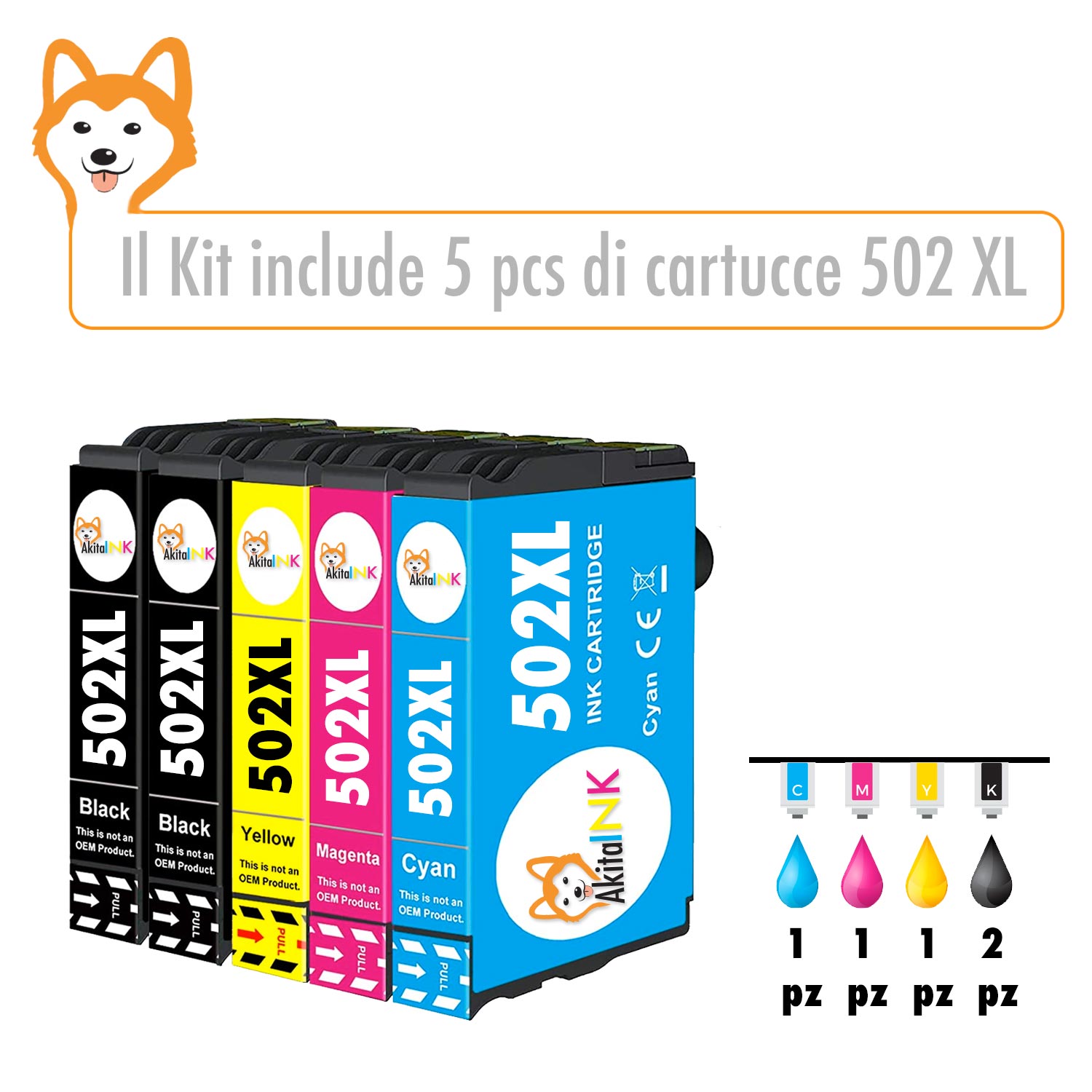🖨️ Kit da 5 cartucce compatibili Epson 502XL – per stampe nitide e affidabili.