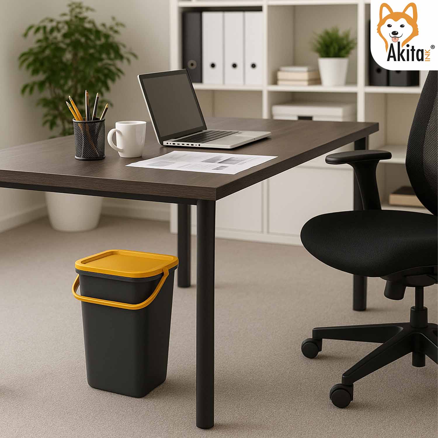 AkitaInk Pattumiera 10L Moda Nero - Ambra con Manico