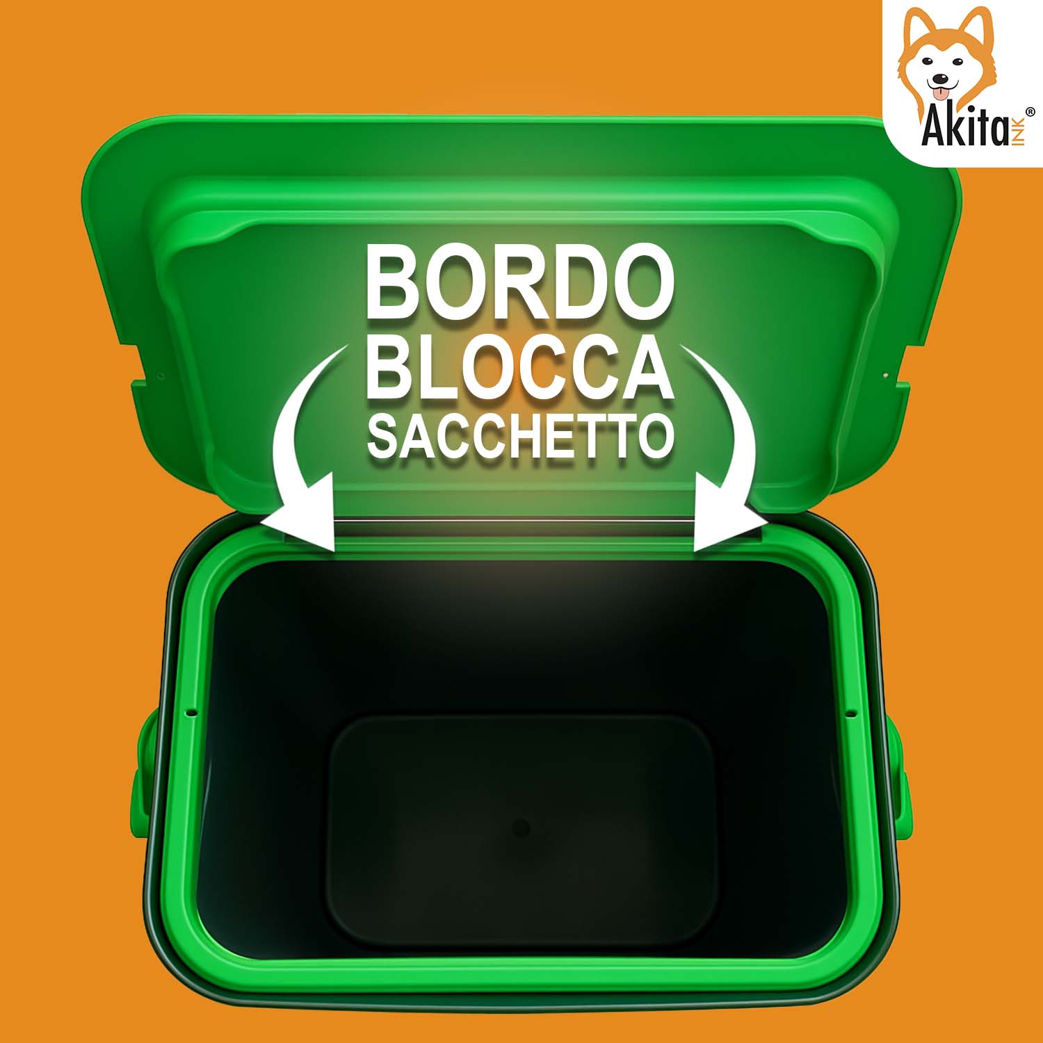 AkitaInk Pattumiera 10L Moda Nero - Verde con Manico