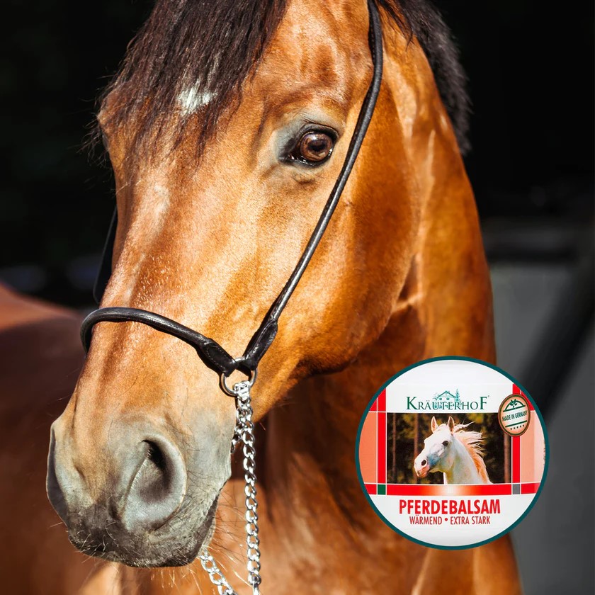 Il Balsamo per cavalli riscaldante Kräuterhof Extra Strong da 250 ml è una formulazione concentrata e potenziata, pensata per offrire un’azione riscaldante intensa e un sollievo mirato alle zone affaticate o doloranti. Grazie alla presenza di estratti naturali di piante officinali, il balsamo agisce in profondità per alleviare la rigidità muscolare, stimolare la circolazione sanguigna e sciogliere le tensioni localizzate.