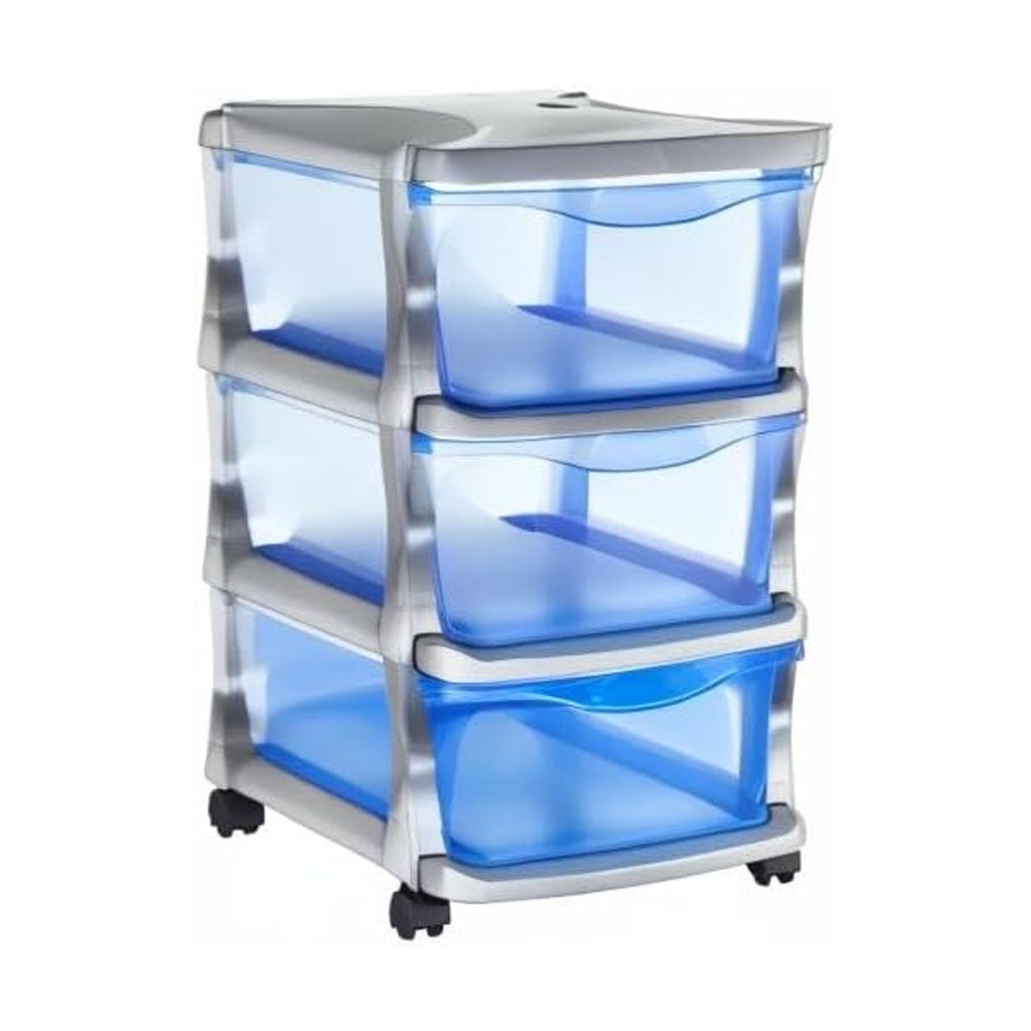 Dotata di 3 ampi cassetti scorrevoli e 4 ruote pivottanti, consente uno spostamento agevole anche a pieno carico. Il design compatto (36x40x62 cm) e il colore argento neutro la rendono adatta a qualsiasi ambiente: bagno, camera, ufficio o lavanderia.