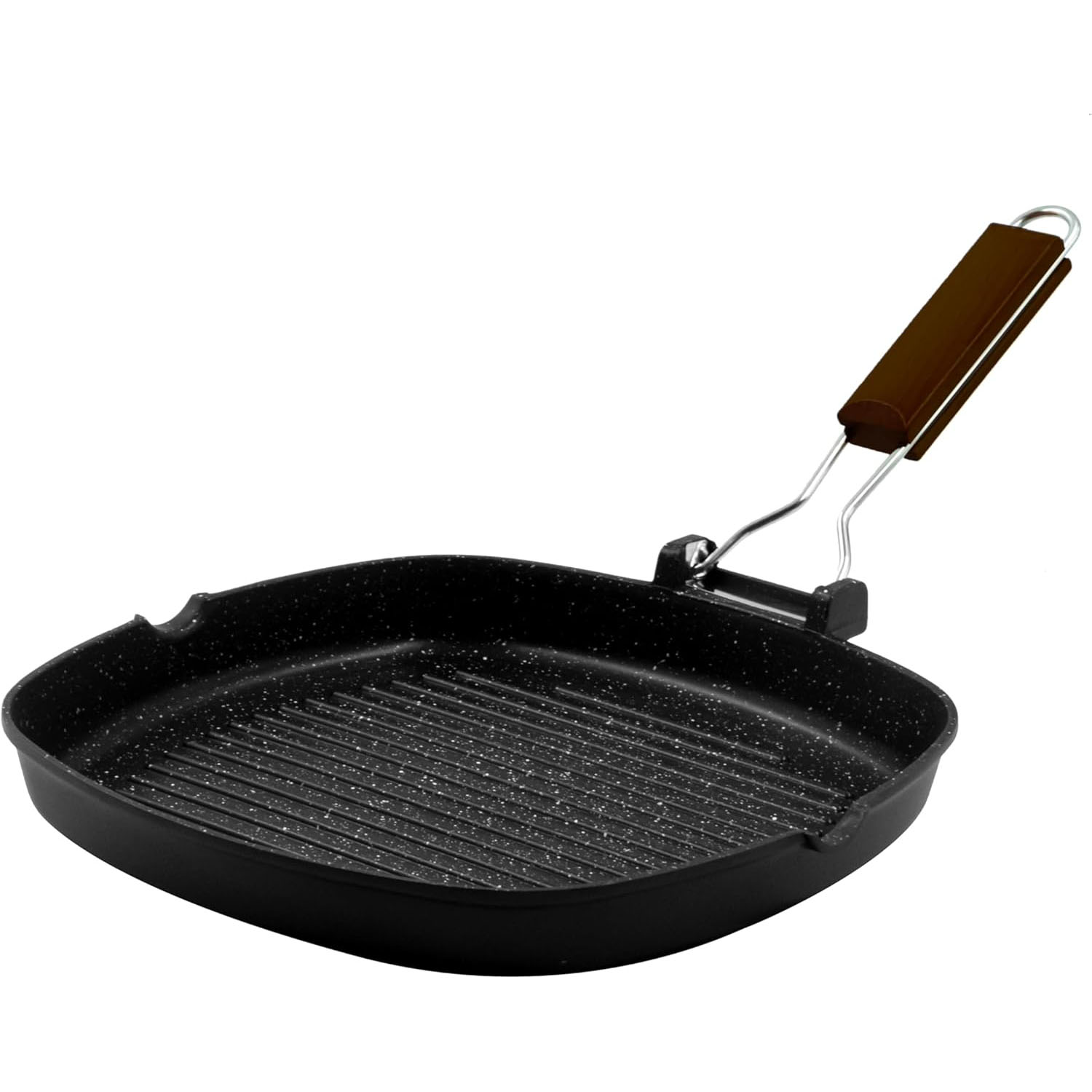 Grazie al manico pieghevole, si ripone facilmente anche in cucine con poco spazio. La superficie grill è perfetta per cuocere carne, pesce, verdure e panini, mantenendo i cibi leggeri e gustosi.