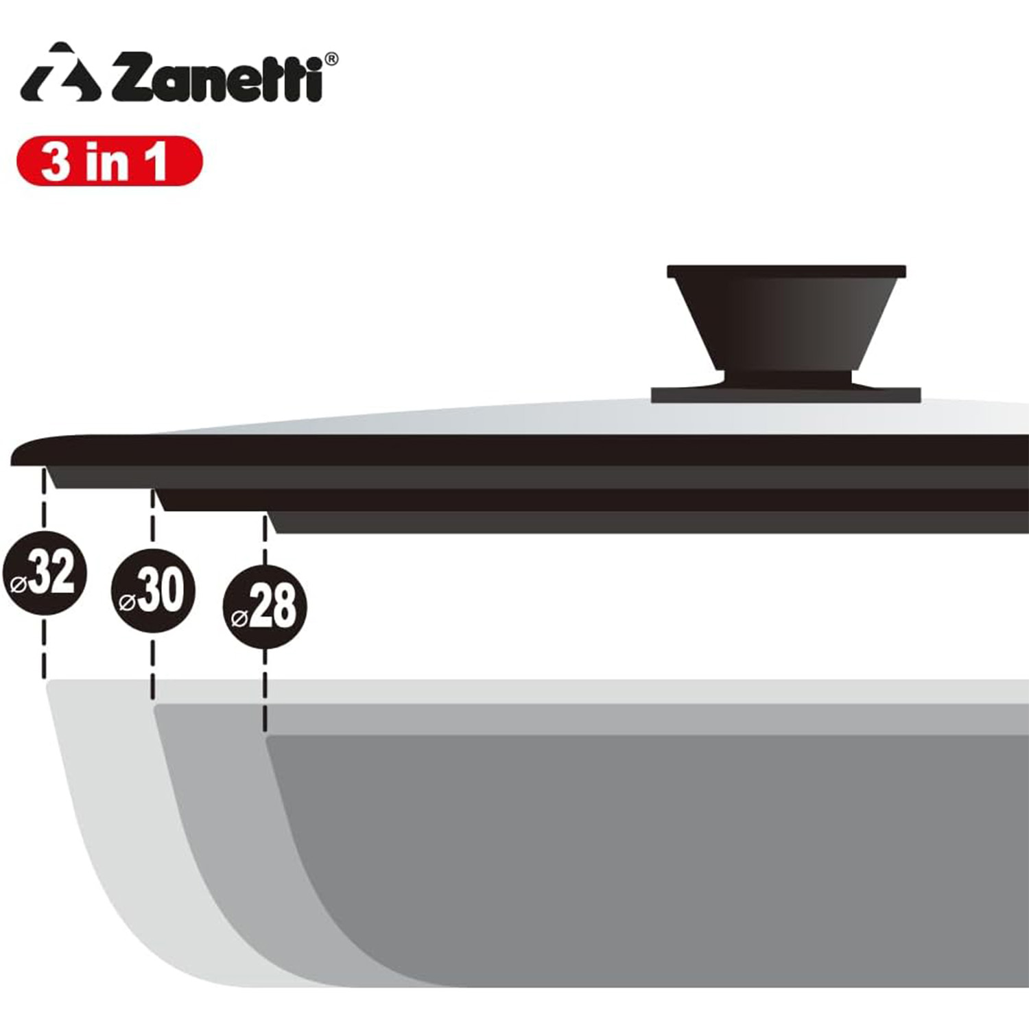 Realizzato da Zanetti Emiliano, azienda italiana attiva dal 1953 e sinonimo di qualità nel pentolame e negli accessori da cucina, questo coperchio unisce funzionalità, sicurezza ed eleganza, rendendolo un complemento indispensabile per ogni cucina.