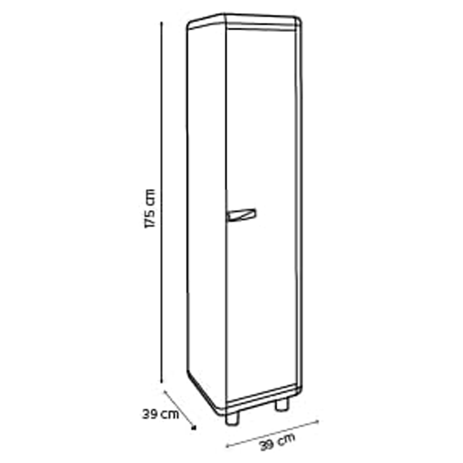 Con dimensioni compatte di 44x39x175 cm, è perfetto per riporre attrezzi da giardino, prodotti per la pulizia, utensili o altri accessori, mantenendo tutto in ordine e al riparo da pioggia e polvere. Il design semplice e funzionale lo rende versatile e adatto a qualsiasi ambiente esterno, mentre la sua struttura leggera facilita lo spostamento quando necessario.