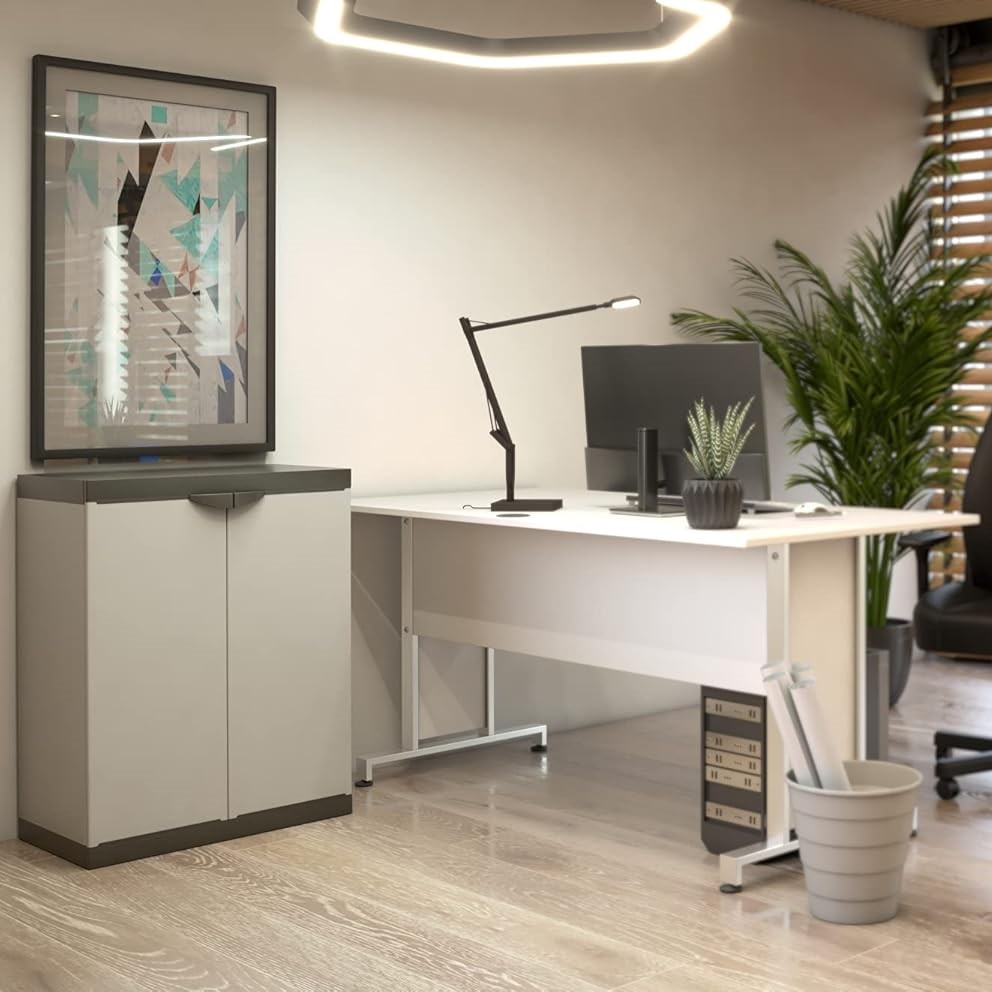 L’armadietto per la raccolta differenziata, dotato di due ante, un ripiano e tre borse per la raccolta differenziata, è il prodotto dal design semplice e lineare per la raccolta differenziata.
