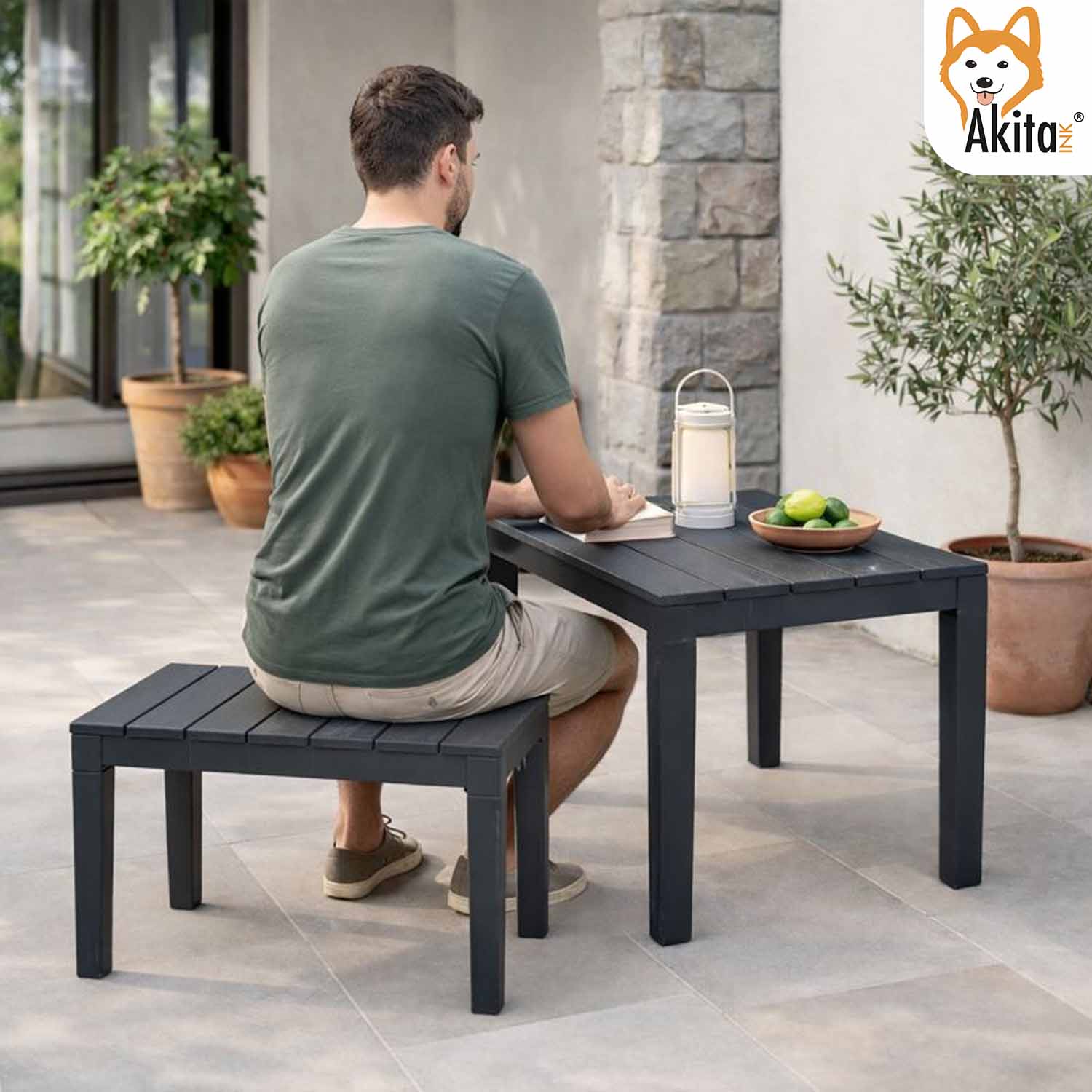 Panca in plastica colore antracite, dimensioni 60x38,5x45 cm. Ideale per uso interno ed esterno, resistente e versatile per casa e giardino.