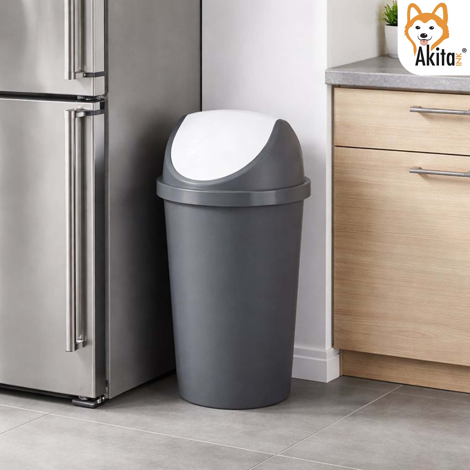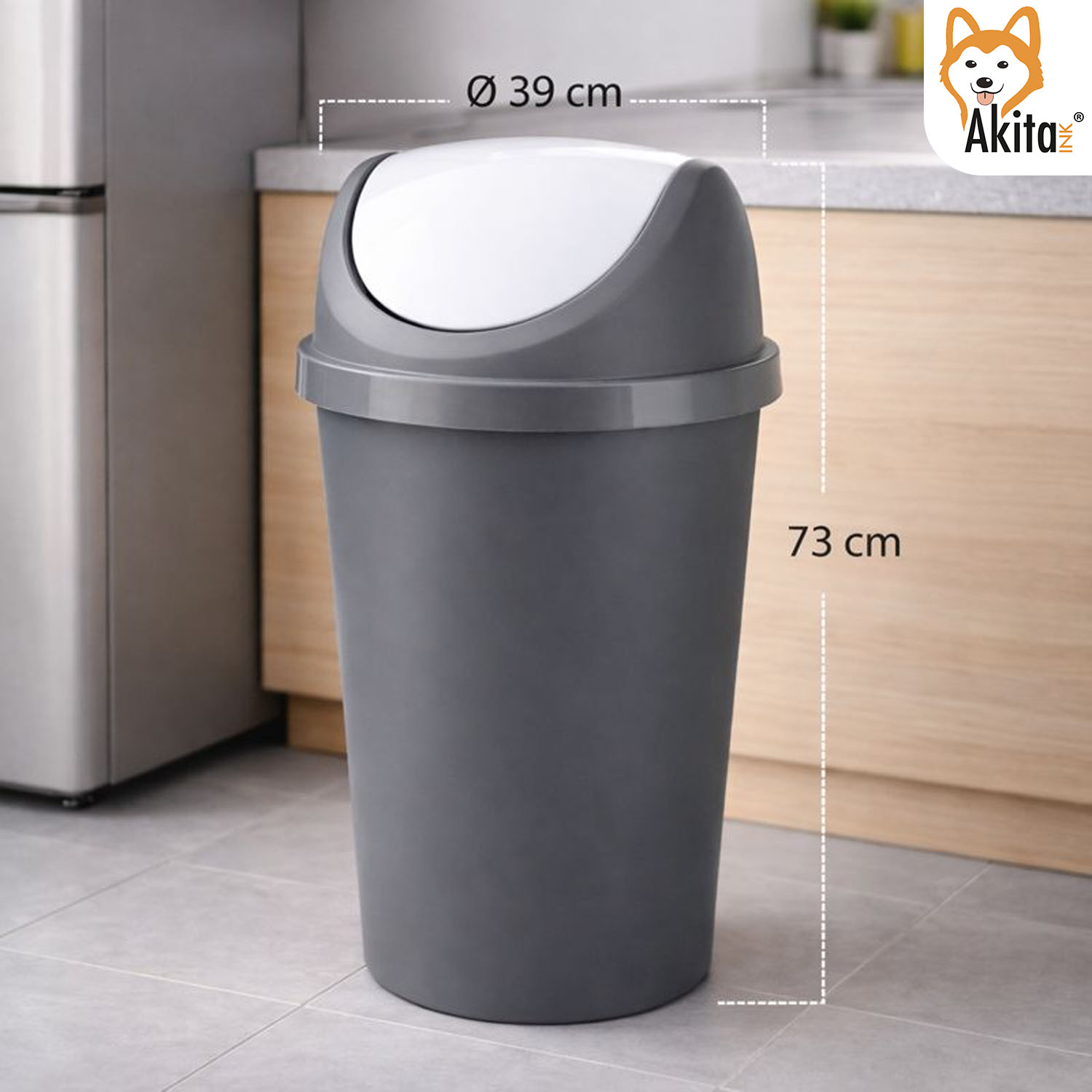 Il design moderno nei colori Bianco/Grafite si adatta facilmente a cucina, ufficio, lavanderia, garage e spazi comuni. Con una capienza di 45 litri e dimensioni diametro 39 cm x altezza 73 cm, offre un ampio volume contenitivo mantenendo una struttura stabile e salvaspazio.