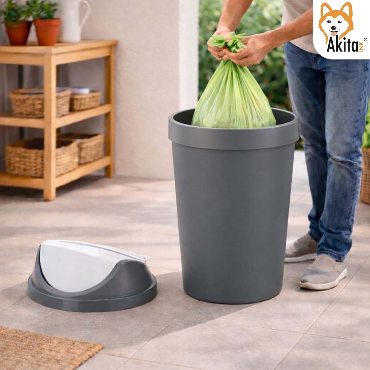 Realizzata in plastica resistente, è facile da pulire e progettata per durare nel tempo. Il coperchio basculante contribuisce a contenere odori e a mantenere l’ambiente ordinato.