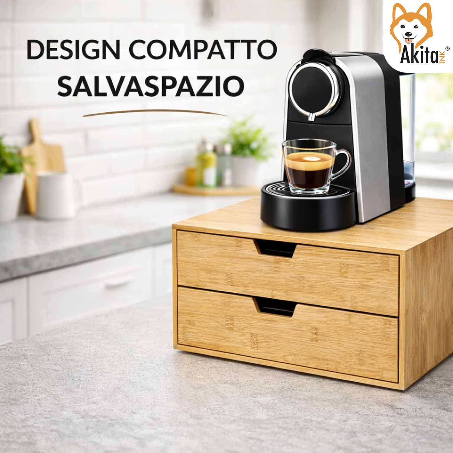 Il portacapsule in bamboo con doppio cassetto è la soluzione ideale per organizzare con ordine e stile la tua postazione caffè. Grazie alla struttura compatta e al design naturale, consente di tenere sempre a portata di mano capsule, cialde e accessori.