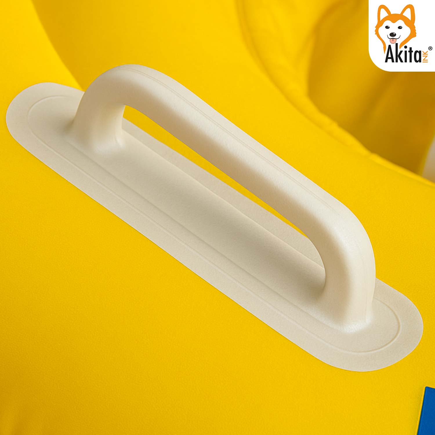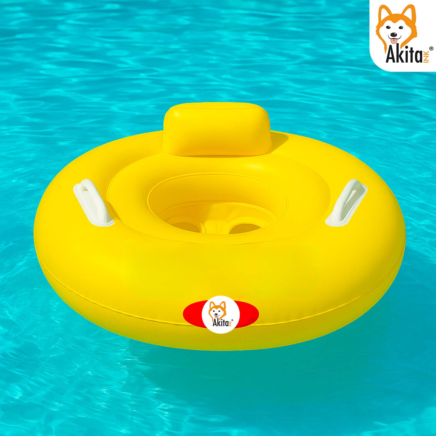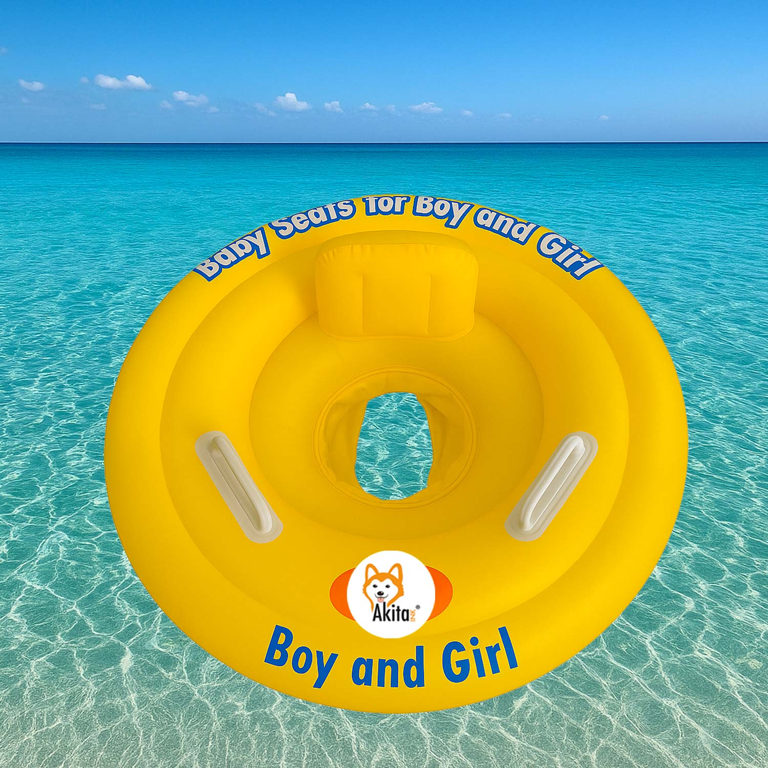 La forma quadrata offre una base solida, mentre le due maniglie anteriori sono ideali per il gioco o per permettere a un adulto di controllare meglio il salvagente. Disponibile in giallo o rosso, è realizzato in vinile resistente, facile da gonfiare e pulire.
