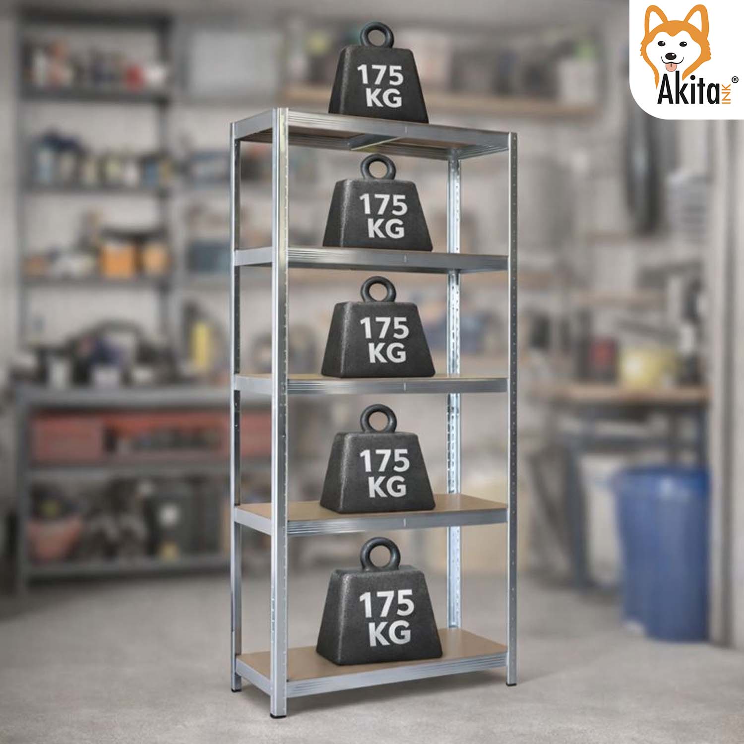Dotato di 5 ripiani, ogni ripiano supporta una portata massima di 175 kg, rendendo lo scaffale adatto anche per carichi pesanti come utensili, scatoloni, attrezzature e materiali ingombranti.