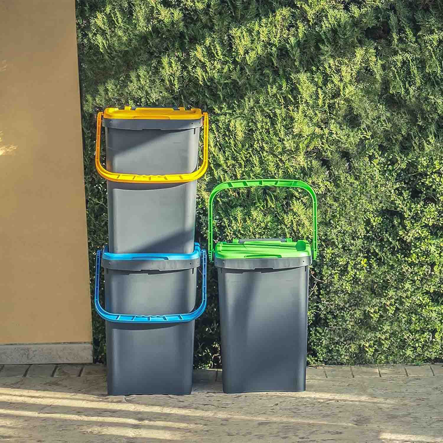 Grazie al design compatto e modulare, questo set è perfetto per cucina, casa, ufficio o giardino, permettendo di gestire plastica, vetro, carta e umido in modo ordinato e funzionale.