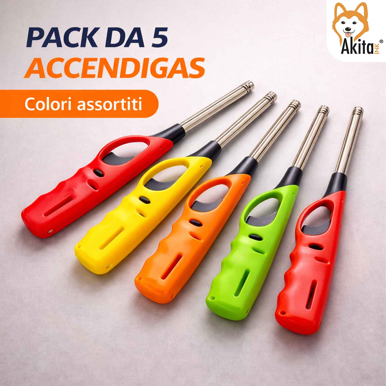 Il set da 5 accendigas lunghi ricaricabili AkitaInk è la soluzione pratica e sicura per accendere fornelli, barbecue, caminetti e candele con facilità. Grazie alla fiamma lunga, permettono di raggiungere punti difficili mantenendo una distanza sicura dalla fonte di calore.