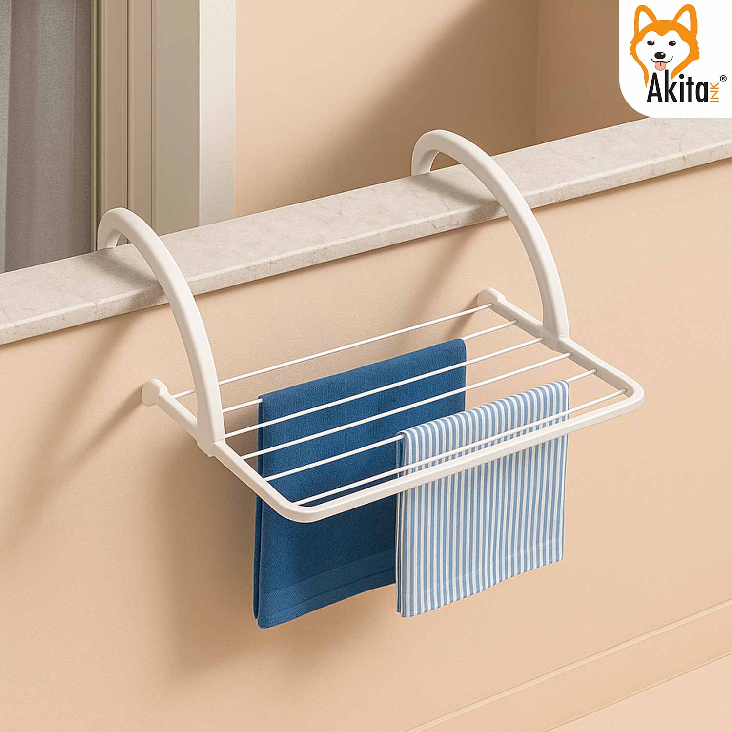 La struttura è realizzata con materiali di qualità: acciaio inox per la robustezza e plastica resistente per le parti di fissaggio; questo consente resistenza agli agenti atmosferici e lunga durata. Il design sospeso lo rende perfetto per balconi, terrazzi o radiatori, e l’apertura e lo spazio tra le barre favoriscono la circolazione dell’aria per asciugare più rapidamente.