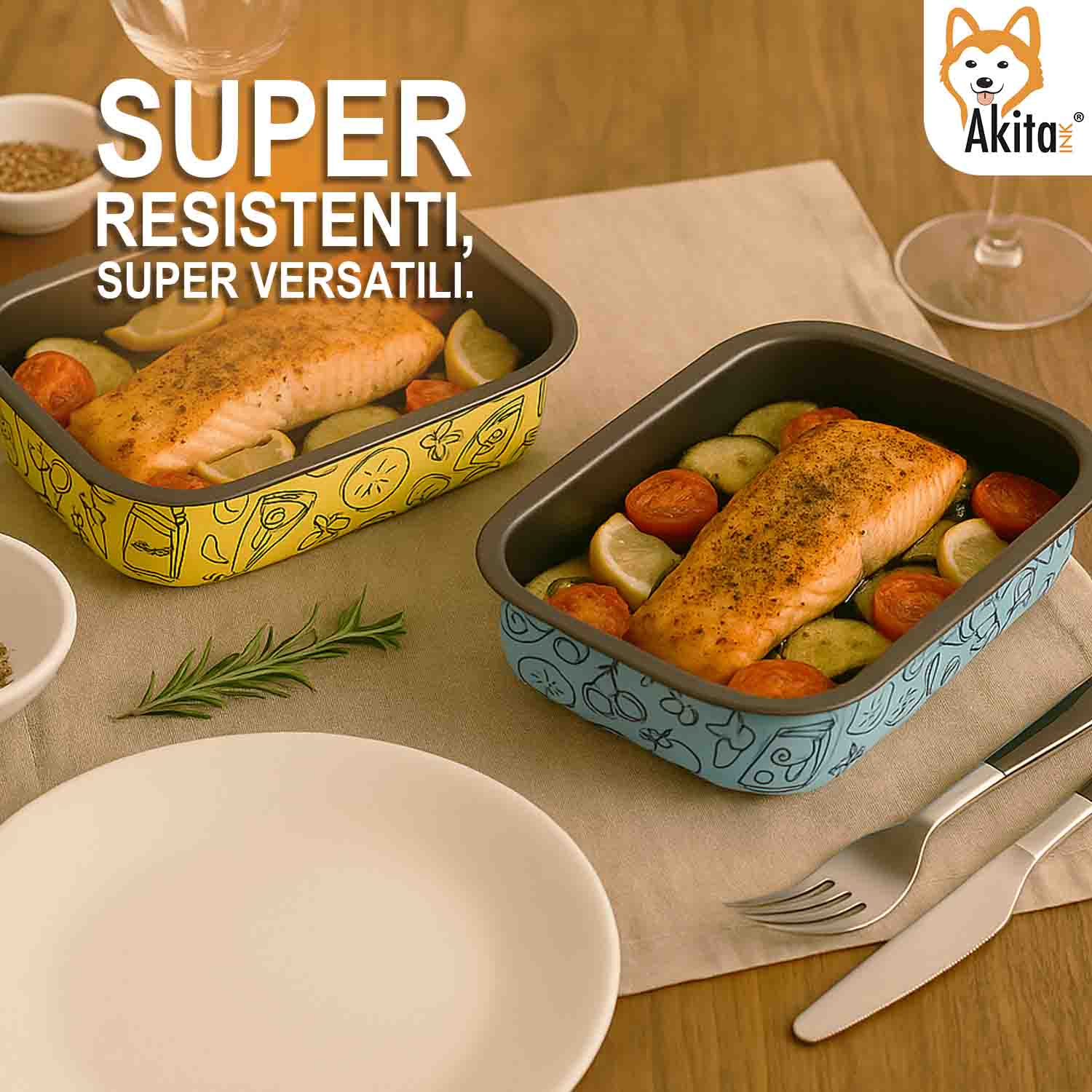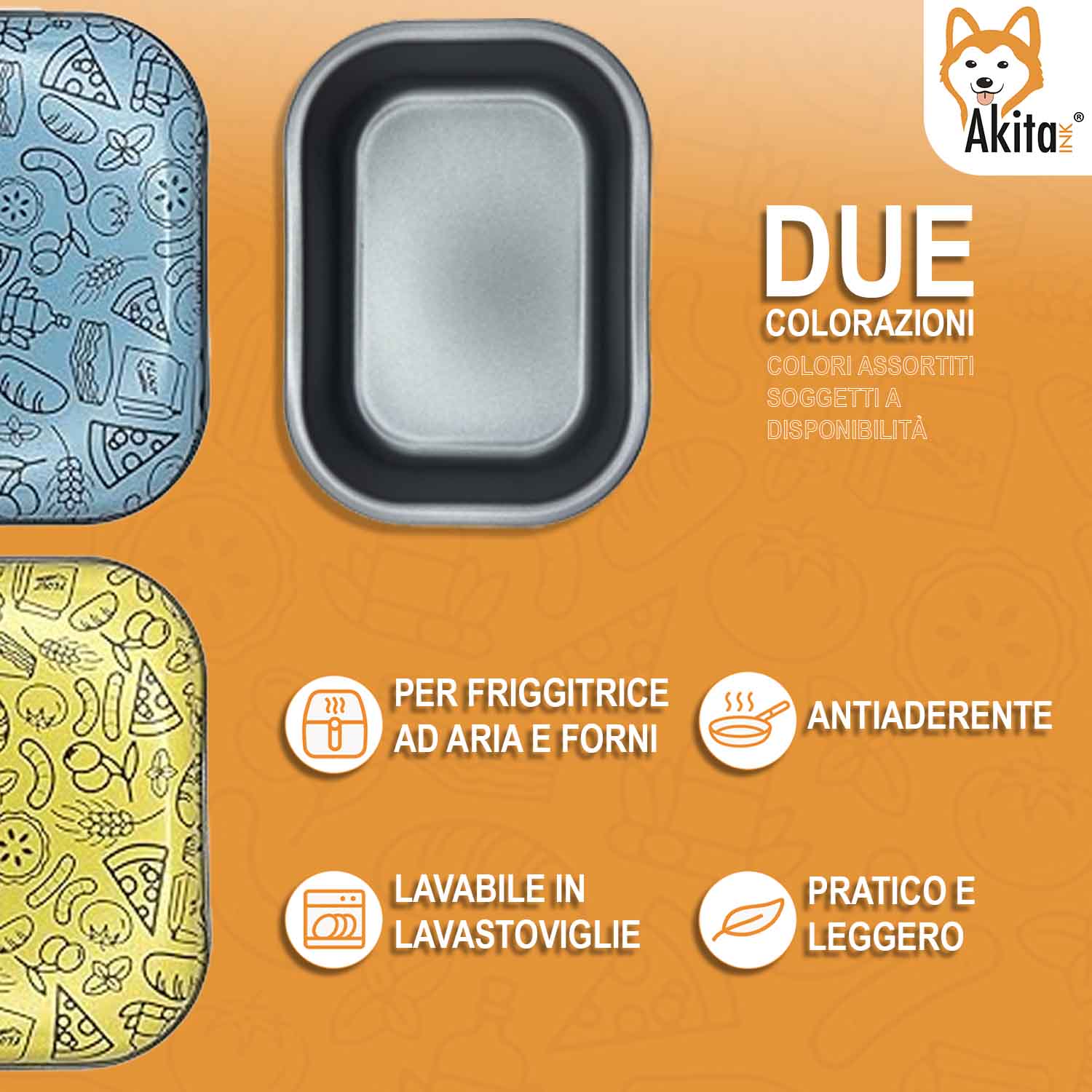 La teglia rettangolare AkitaInk in alluminio antiaderente è ideale per chi cerca uno strumento pratico, resistente e facile da usare per friggitrice ad aria, forno tradizionale e airfryer. Con dimensioni totali 22 × 16 × 5 cm e una base interna di 20 × 14 cm, è perfetta per piccole porzioni, snack, monoporzioni o preparazioni leggere da cuocere rapidamente e in modo uniforme.
